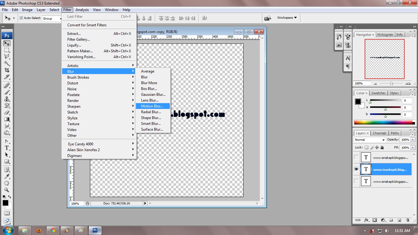 5. Klik layer ke-2 seperti gambar di bawah, pilih filter - blur - motion blur